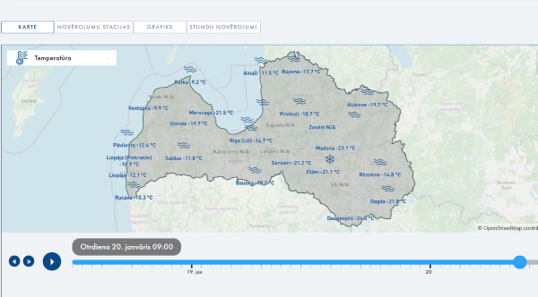 Otrdien Latvijā uzausa saltākais rīts kopš 2024. gada 8. janvāra, liecina dati no meteoroloģisko novērojumu stacijām.